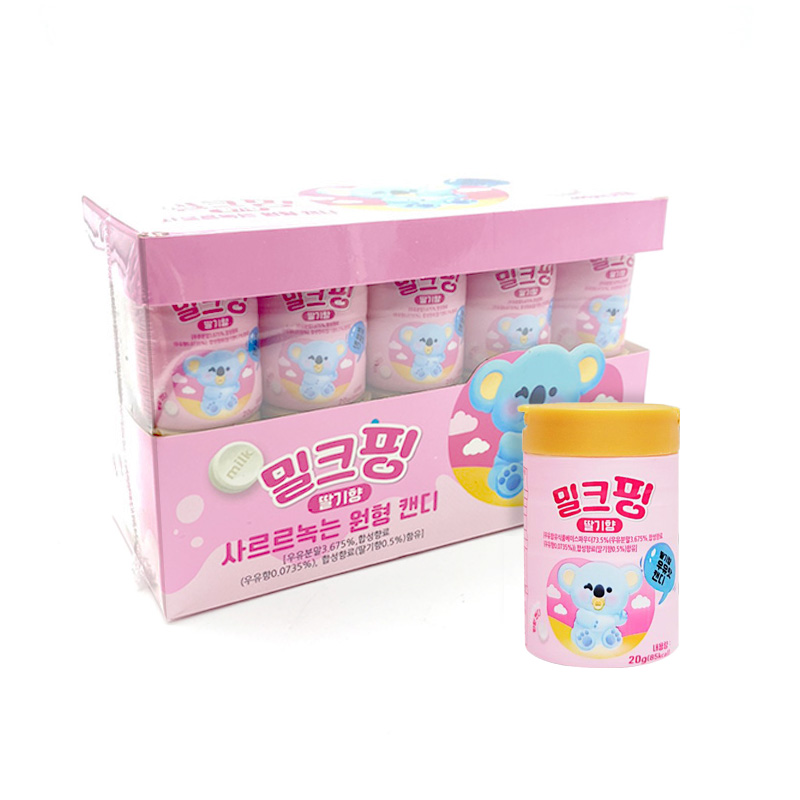 (500)밀크핑 딸기향 캔디 / (타) 20g X 20개 [1박스12타]