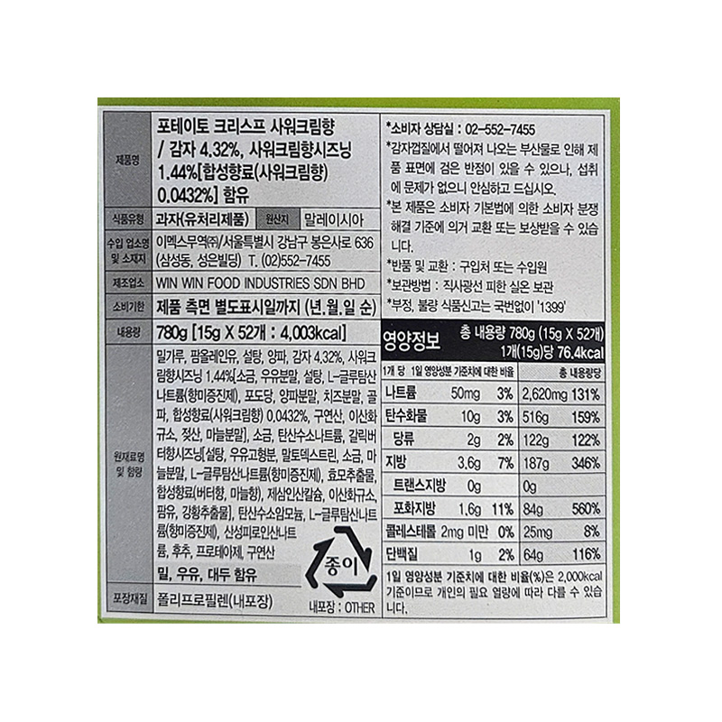 (200)포테이토 크리스프 샤워크림 / (타) 15g X 52개 [1박스8타]