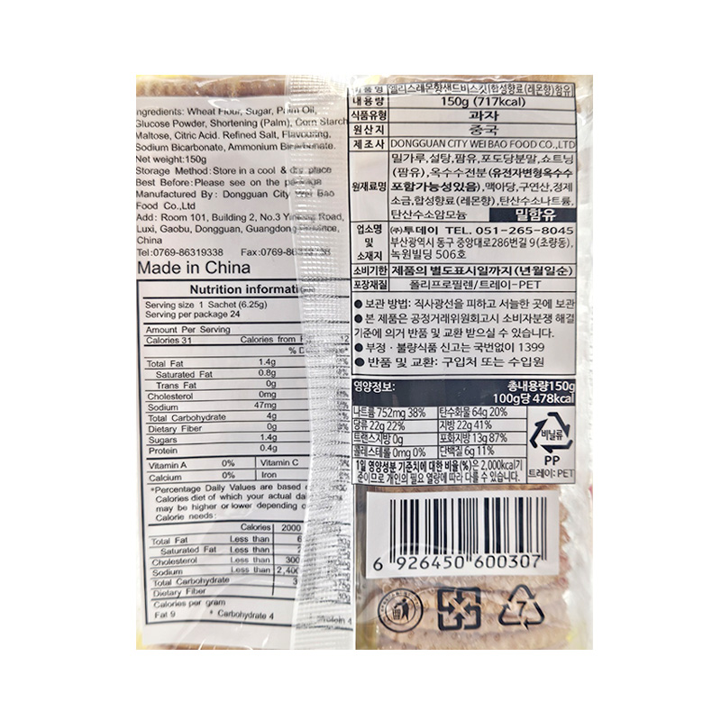 (1500)투데이 엘리스 레몬향샌드비스킷 / (묶음) 150g X 8개 [1박스24개]