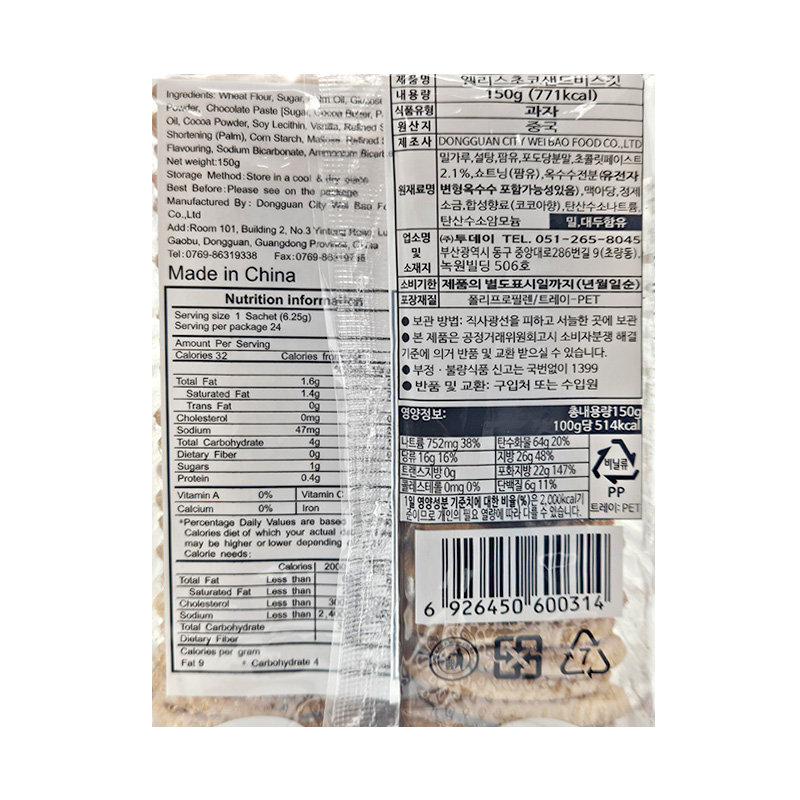 (1500)투데이 엘리스 초코샌드비스킷 / (묶음) 150g X 8개 [1박스24개]