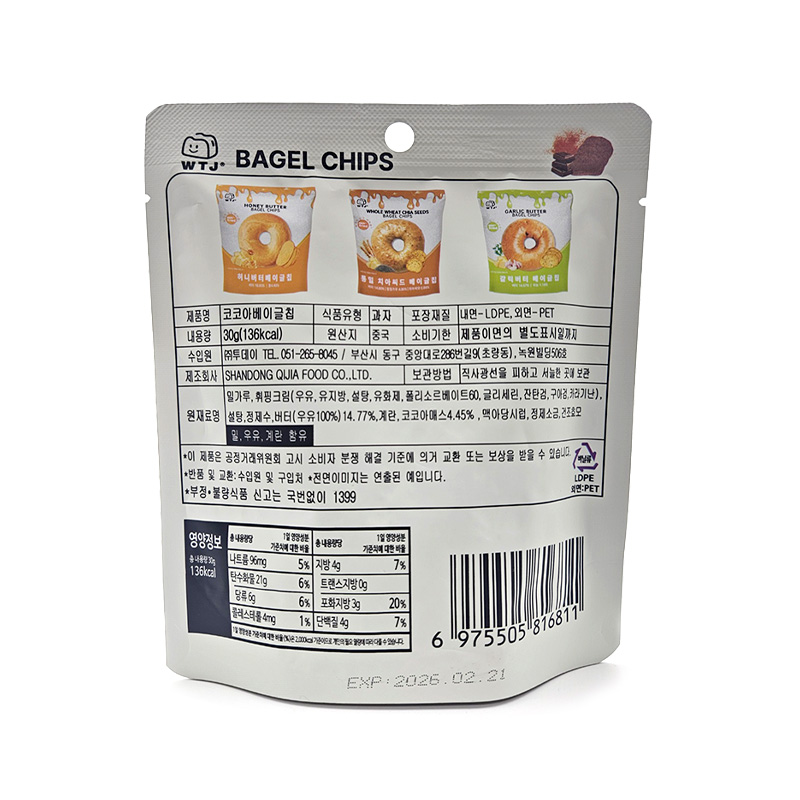 (1200)코코아 베이글칩 / (묶음) 30g X 10개 [1박스40개]