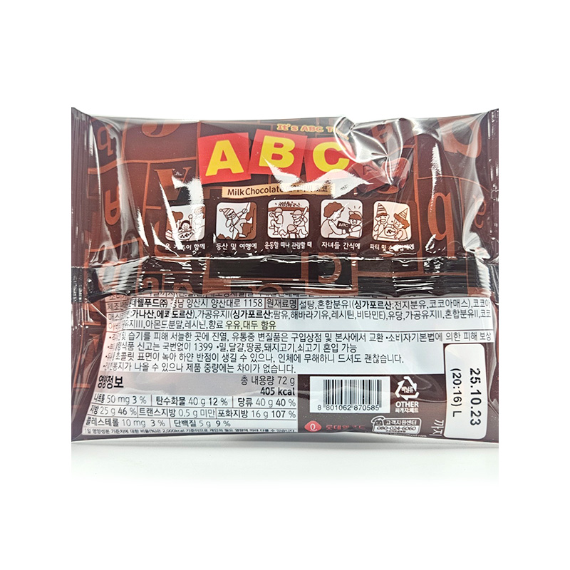 (3000)롯데 ABC초콜릿 / (묶음) 72g X 5개 [1박스20개]