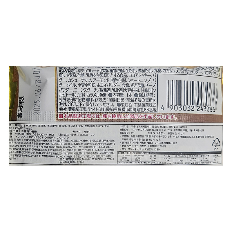 (초특가행사300)유라쿠 블랙썬더 싱글바 버터 / (타) 22g X 20개 [1박스16타]