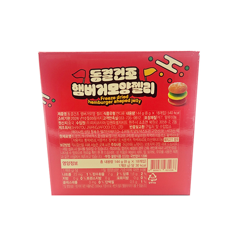 (1000)동결건조 햄버거모양젤리 / (타) 8g X 18개 [1박스12타]