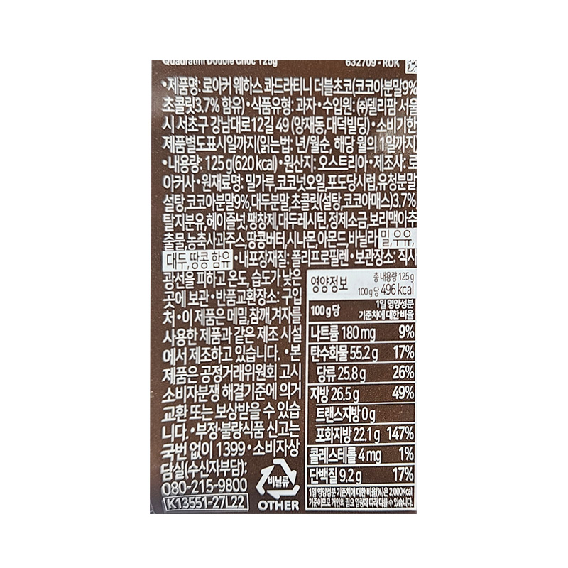 (5500)로아커 더블초코 웨이퍼 / (묶음) 125g X 6개 [1박스6개]