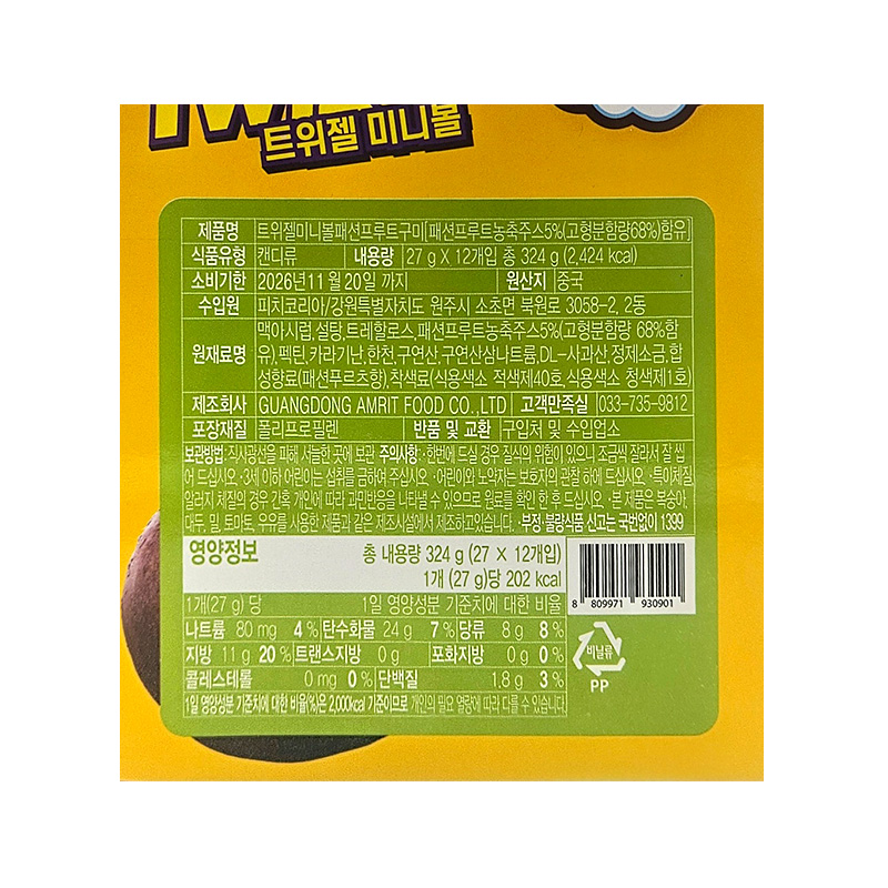 (1200)트위젤 미니볼 패션프루트 / (타) 27g X 12개 [1박스8타]