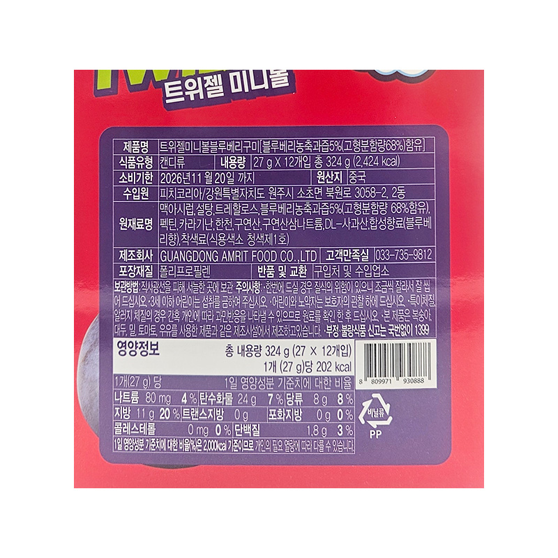 (1200)트위젤 미니볼 블루베리 / (타) 27 X 12개 [1박스8타]