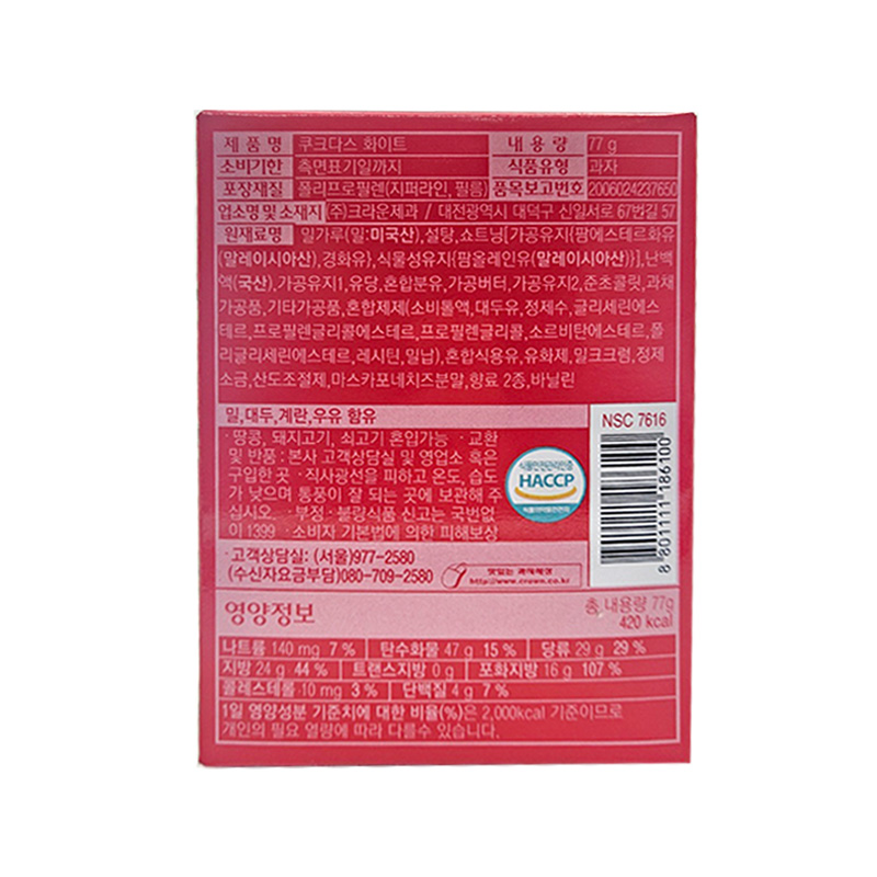 (1400)크라운 쿠크다스 화이트 / (묶음) 77g X 7개 [1박스21개]