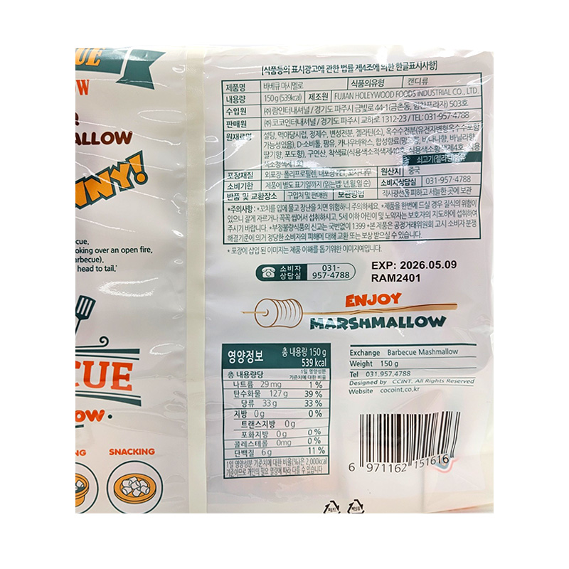 (초특가행사1000)바베큐 마시멜로 / (타) 150g X 6개 [1박스4타]