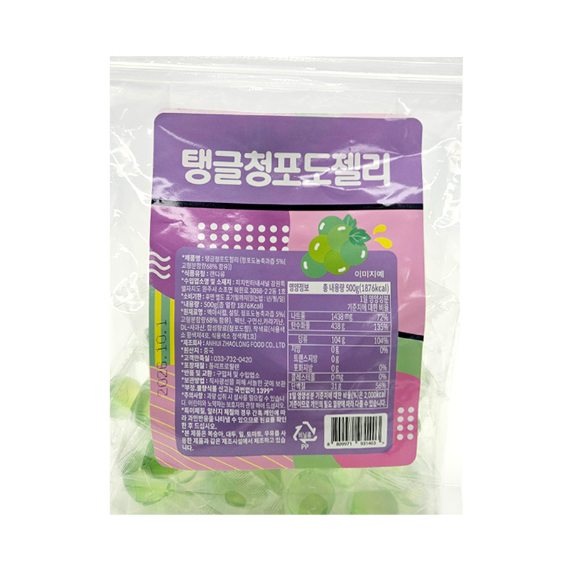 (9000)대용량 탱글 청포도젤리 / (타) 500g X 2개 [1박스16개]