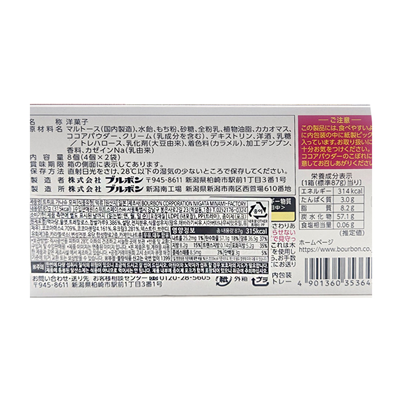 (초특가행사1000)부르봉 트뤼프 가나슈 모찌 / (묶음) 87g X 2개 [1박스48개]