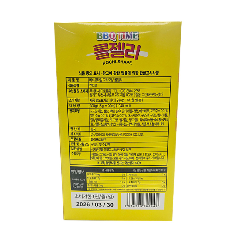 (행사300)비비큐타임 꼬치모양 롤젤리 / (타) 15g X 20개 [1박스12타]