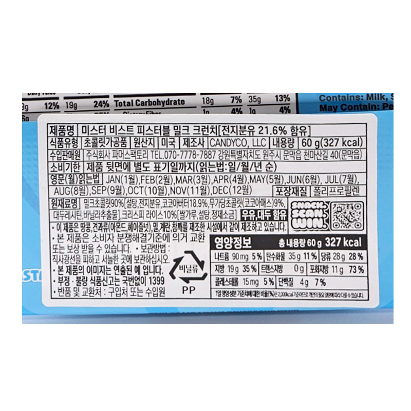 (6000)피스터블 밀크크런치 / (타) 60g X 10개 [1박스18타]