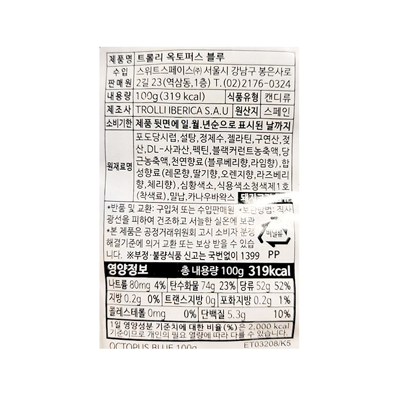 (2200)트롤리 블루옥토퍼스 / (타) 100g X 12개 [1박스8타]