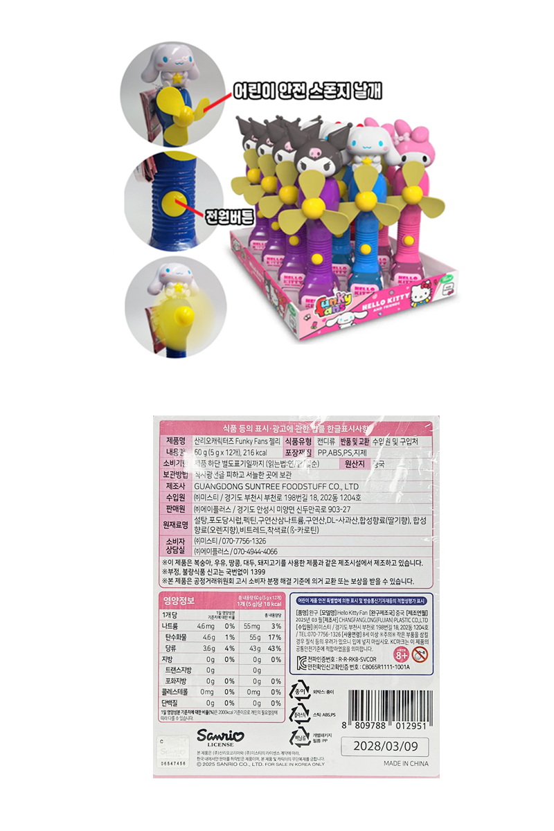 (5500)산리오 펑키팬스젤리 (무선선풍기) / (타) 5g X 12개 [1박스4타]
