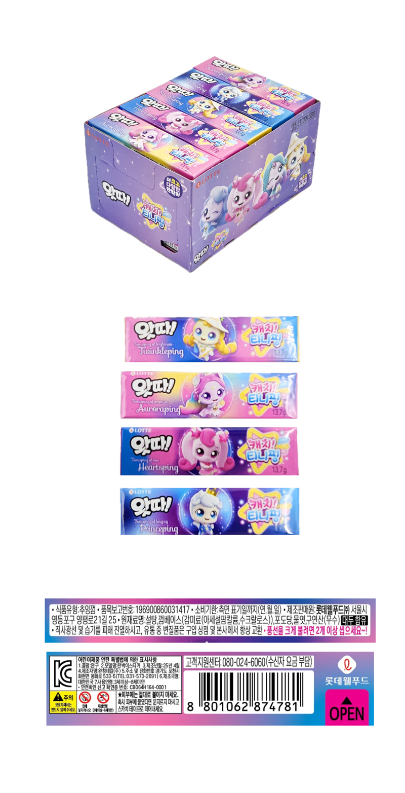 (600)롯데 왓따 판박이 캐치티니핑 / (타) 13.7g X 25개 [1박스9타]