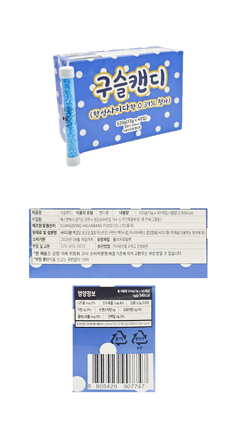 (행사100)구슬캔디 사이다향 / (타) 13g X 40개 [1박스18타]