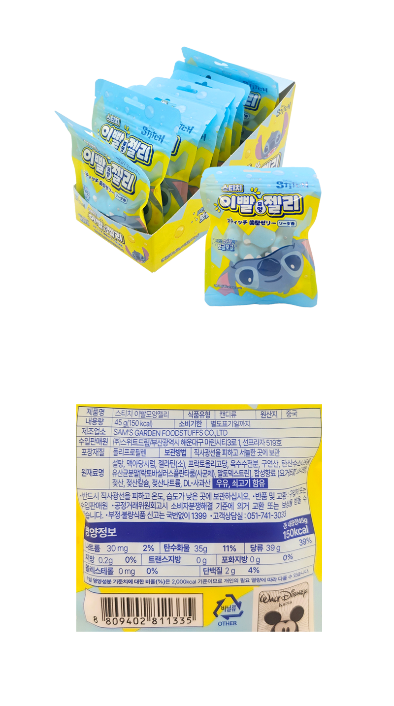 (1500)스티치 이빨모양 젤리 / (타) 45g X 12개 [1박스6타]