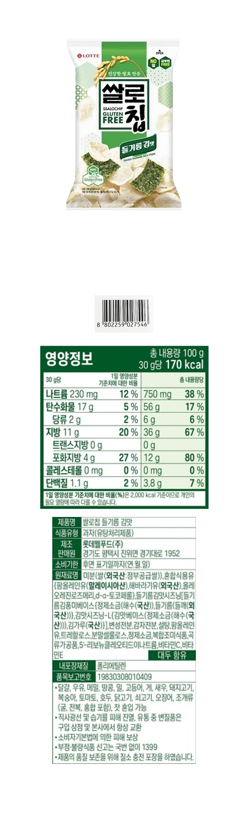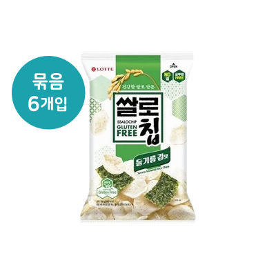 (3000)롯데 쌀로칩 들기름 김맛 / (묶음) 100g X 6개 [1박스12개]