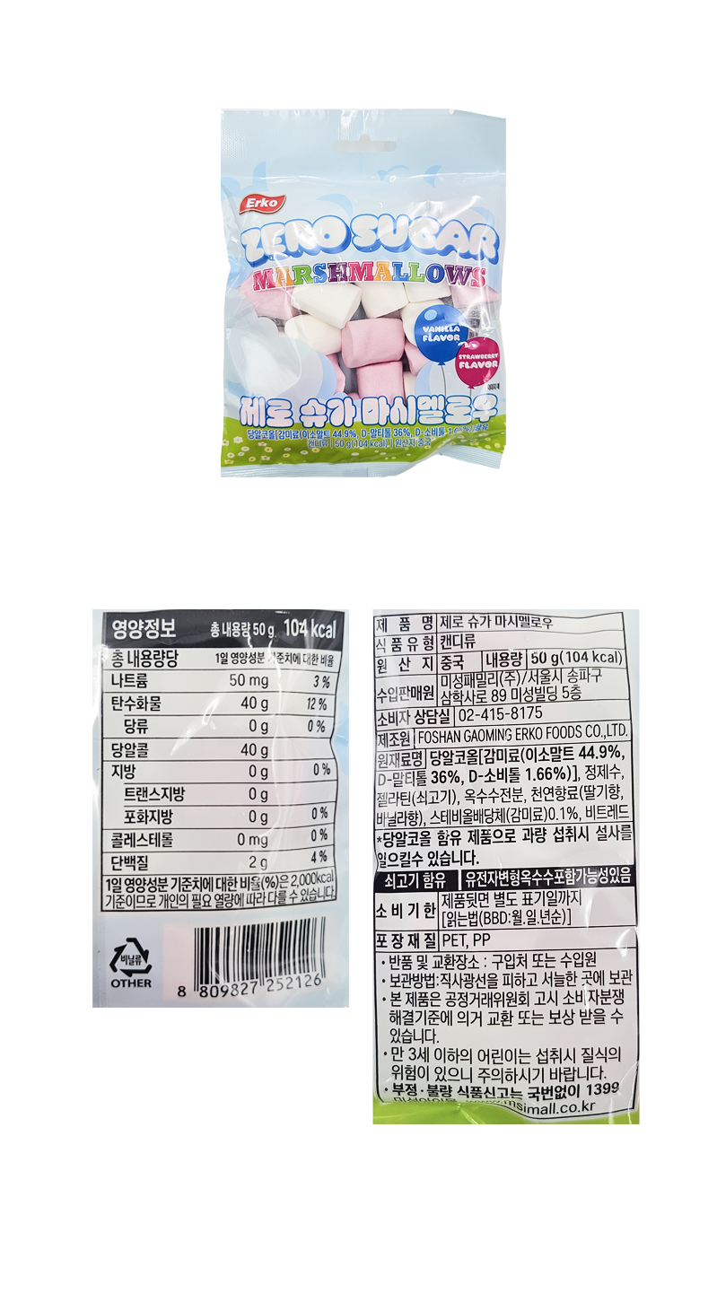 (1200)에르코 제로슈가 마시멜로 / (묶음) 50g X 12개 [1박스24개]