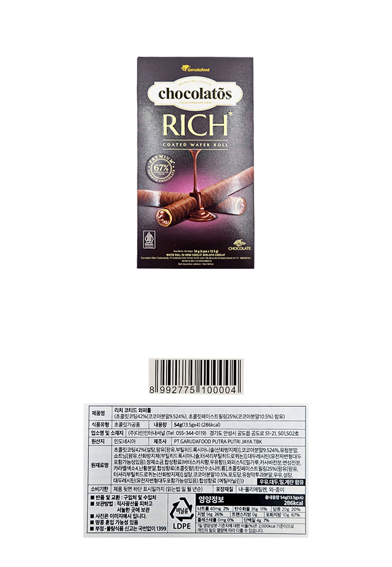 (1800)가루다 리치 코티드 웨이퍼롤 / (타) 54g X 12개 [1박스24개]