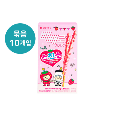 (1800)롯데 빼빼로 스트로베리&밀크 / (묶음) 37g X 10개 [1박스40개]